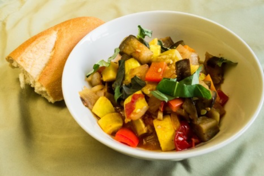 - 1 eggplant, peeled and chopped into 1/2″ squares